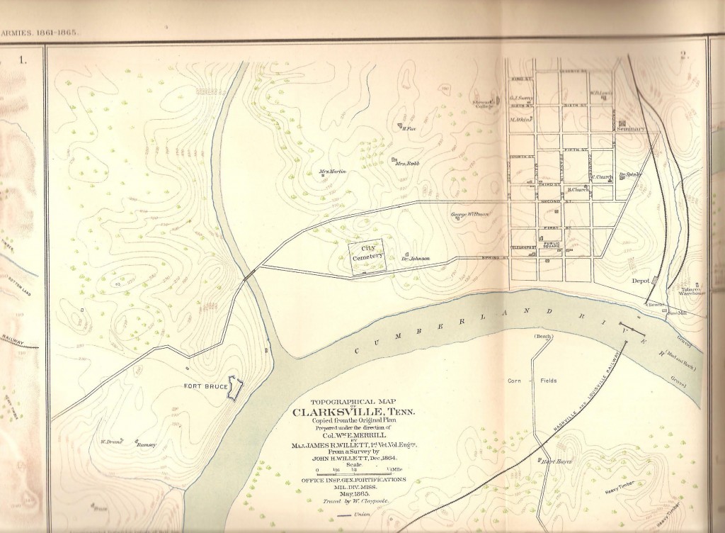 1865 Map Of Clarksville Showing Ft. Defiance/Ft. Bruce